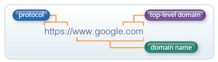 b) The image describes the basic parts of a URL